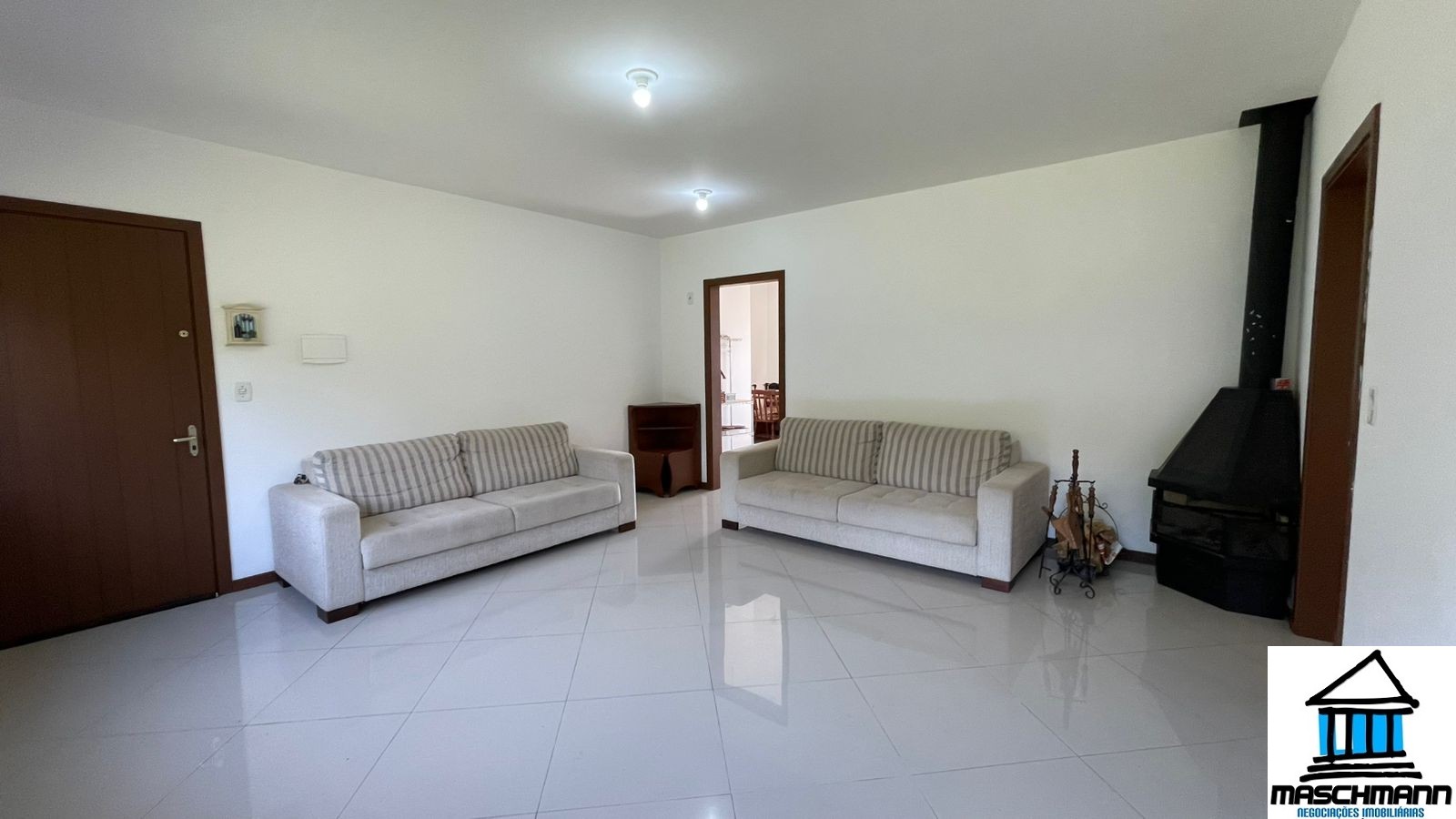 - Ampla sala de estar com lareira, ideal para momentos em família;